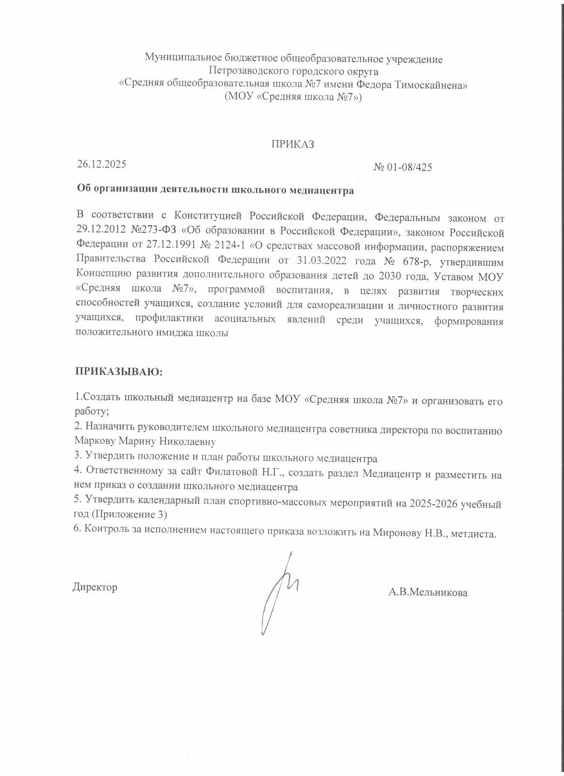 "Средняя общеобразовательная школа  № 7 имени Федора Тимоскайнена"