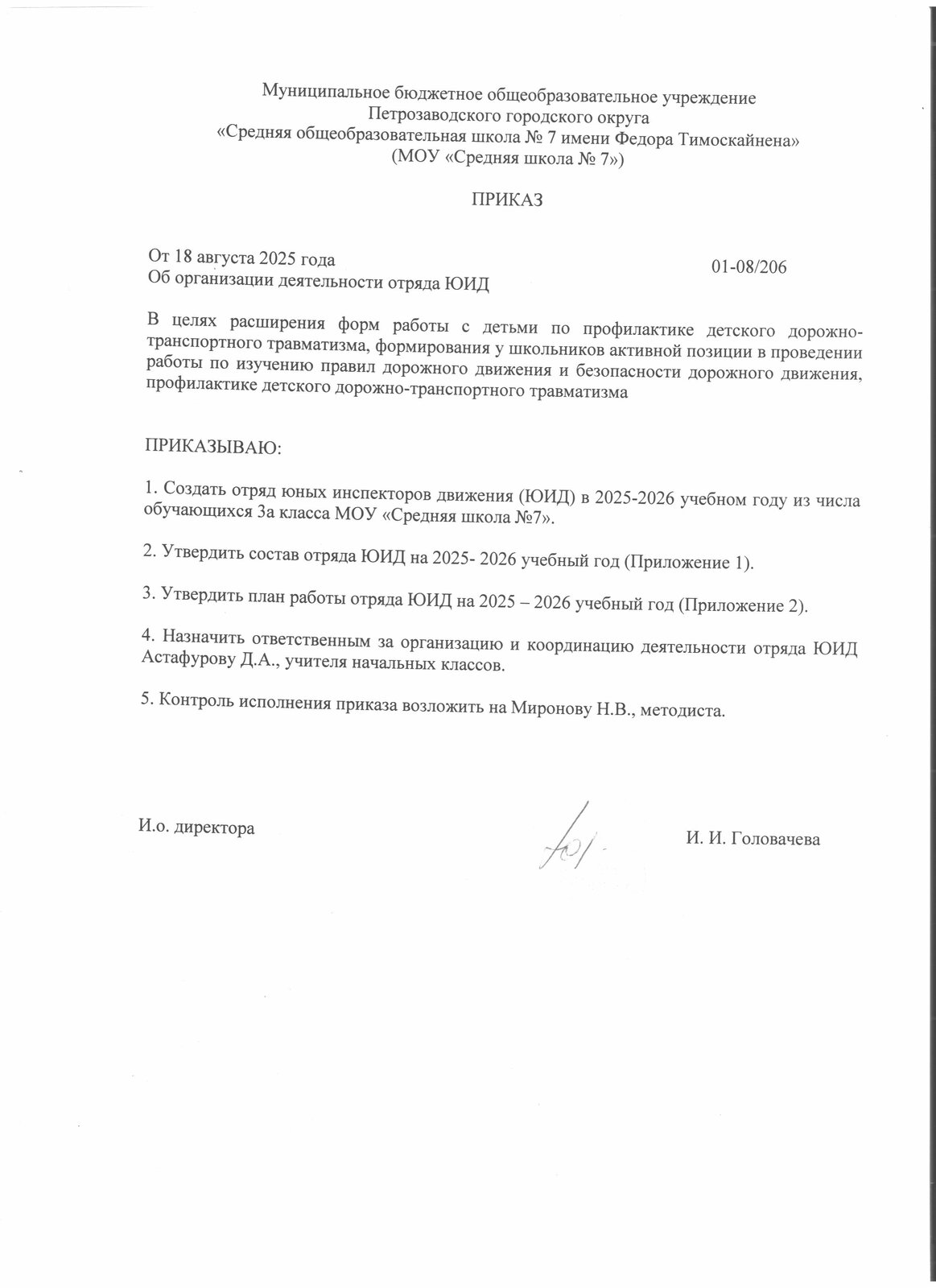 Отряд Юных инспекторов дорожного движения МОУ Средняя школа №7 это творческое объединение школьников, которое помогает в организации работы по профилактике дорожно-транспортного травматизма, пропагандирует безопасное поведение на улицах и дорогах города Петрозхаводска. Является активными участниками разнообразных школьных, городских, республиканских конкурсов, акций, мероприятий.